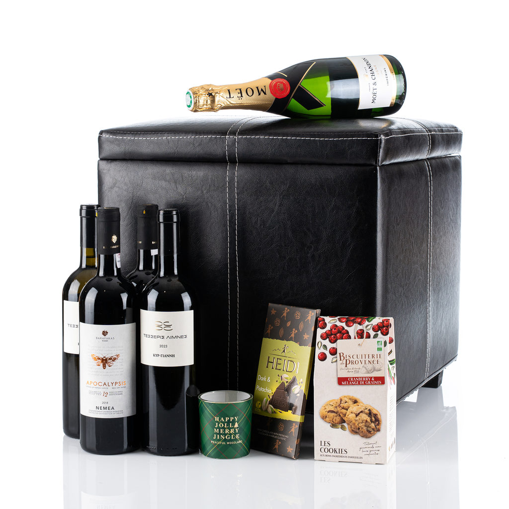 Δερμάτινο σκαμπό-μπαούλο 6 φιαλών (42Χ42Χ42)